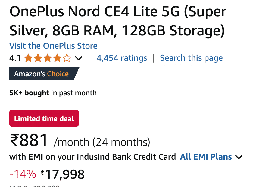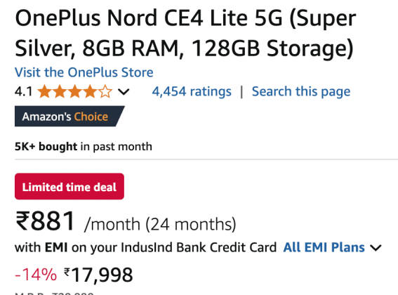 - এই ডিসকাউন্টের পর OnePlus Nord CE 4 Lite 5G ফোনটি 16,999 টাকা (17,999টাকা -1,000 টাকা) দামে সেল করা হবে।
