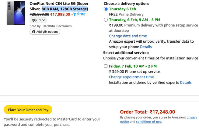 - অন্যদিকে ICICI এবং HDFC Bank ইউজাররা ডেবিট/এটিএম কার্ডের মাধ্যমে 750 টাকা পর্যন্ত ডিসকাউন্ট পেয়ে যাবেন। এর ফলে 8GB RAM সহ ওয়ানপ্লাস ফোনটি 17,249 টাকা (17,999 টাকা -750 টাকা) দামে কেনা যাবে।