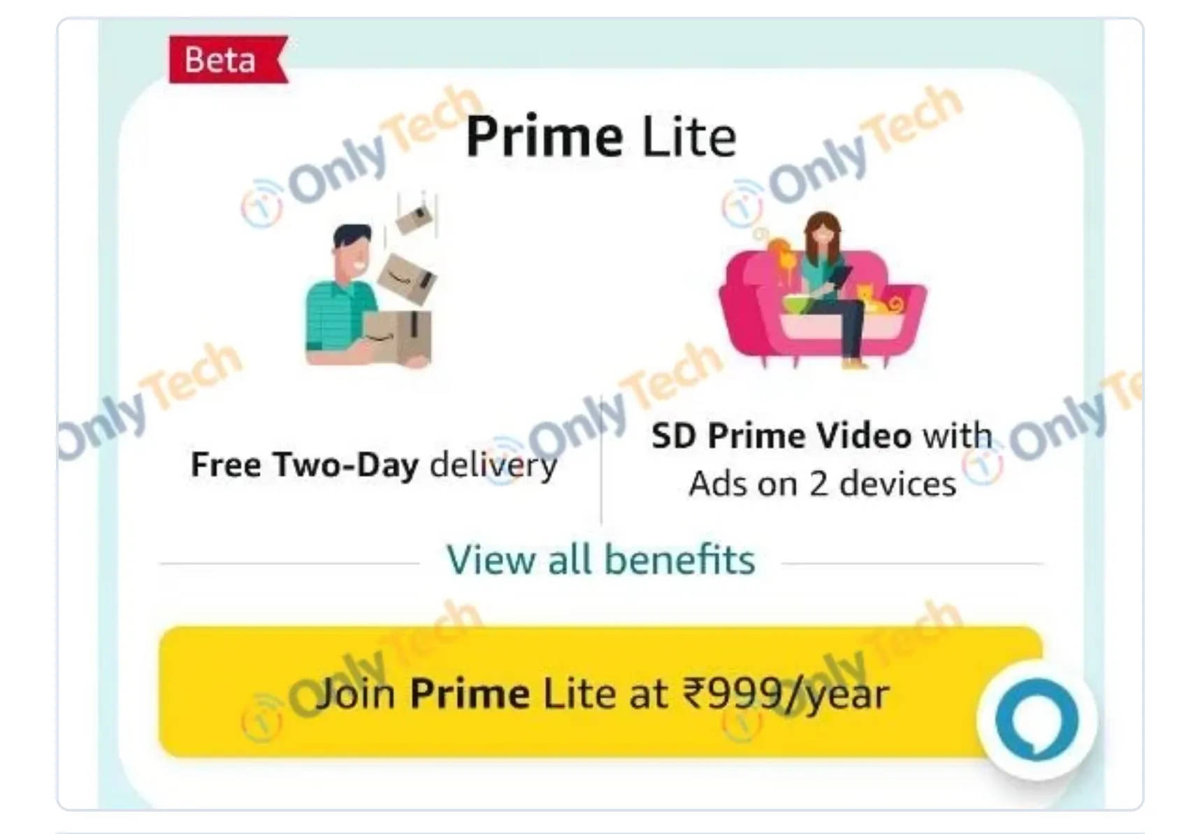 Only Tech এর খবর অনুযায়ী amazon prime lite-এর বার্ষিক প্ল্যানের দাম হবে 999 টাকা। Amazon Prime -এর এই সাবস্ক্রিপশনের দাম 1,499 টাকা। যদিও, এই দাম আগে 999 টাকা ছিল, কিন্তু 2021 সালের ডিসেম্বরে কোম্পানি এই প্ল্যানের দাম 50 শতাংশ বাড়িয়েছে।