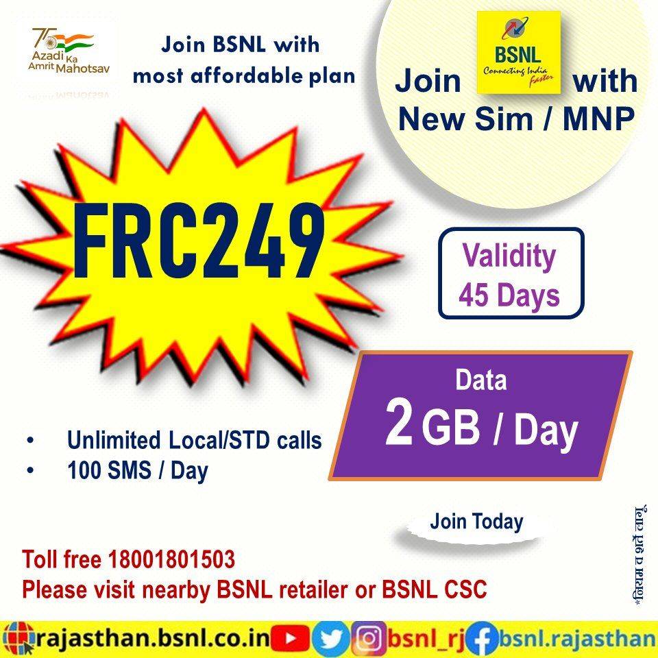 - এটি BSNL এর 45 দিনের ভ্যালিডিটি সহ 249 টাকা দামের রিচার্জ প্ল্যান।