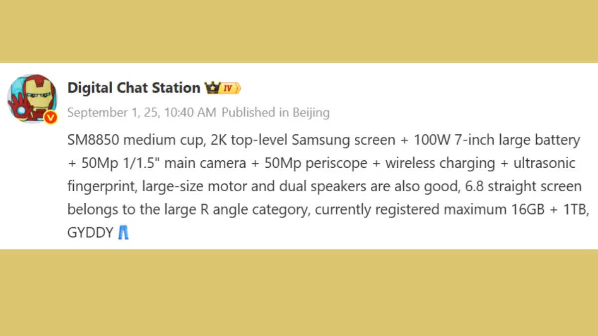 আগামী মাসে চীনে iQOO তাদের ফ্লিয়াগশিপ iQOO 15 ফোন লঞ্চ করতে চলেছে। কোম্পানির পক্ষ থেকে জুলাই মাস থেকেই এই বিষয়ে তথ্য শেয়ার করা হচ্ছে। এবার টিপস্টার ডিজিটাল চ্যাট স্টেশন চীনের ওয়েইবোর মাধ্যমে আপকামিং ফোনের স্পেসিফিকেশন ডিটেইলস জানিয়েছে। জানিয়ে রাখি রিপোর্টের মাধ্যমে 2026 সালের দ্বিতীয় কোয়ার্টারে iQOO 15 Mini এবং iQOO 15 Ultra ফোনদুটি লঞ্চ করা হবে বলে জানা গেছে। চলুন বিস্তারিত জেনে নেওয়া যাক ভ্যানিলা iQOO 15 মডেলের ডিটেইলস সম্পর্কে।