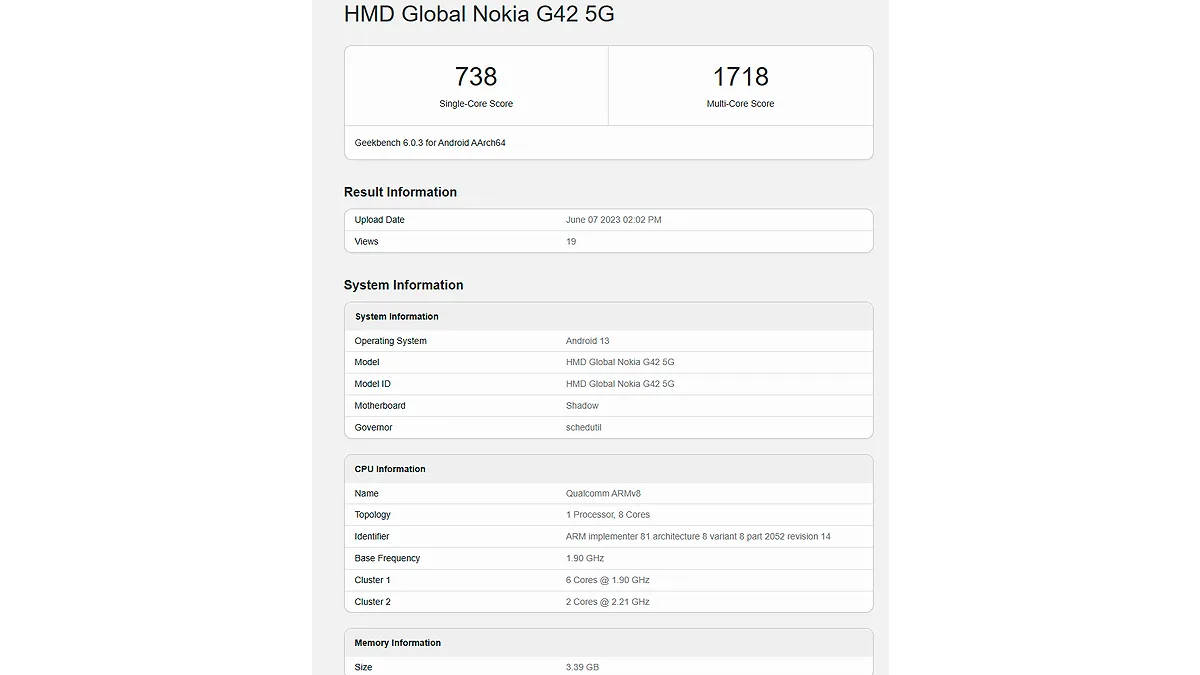 - এই Nokia ফোনটি HMD Global Nokia G42 5G নামে Geekbench-এ তালিকাভুক্ত হয়েছে।