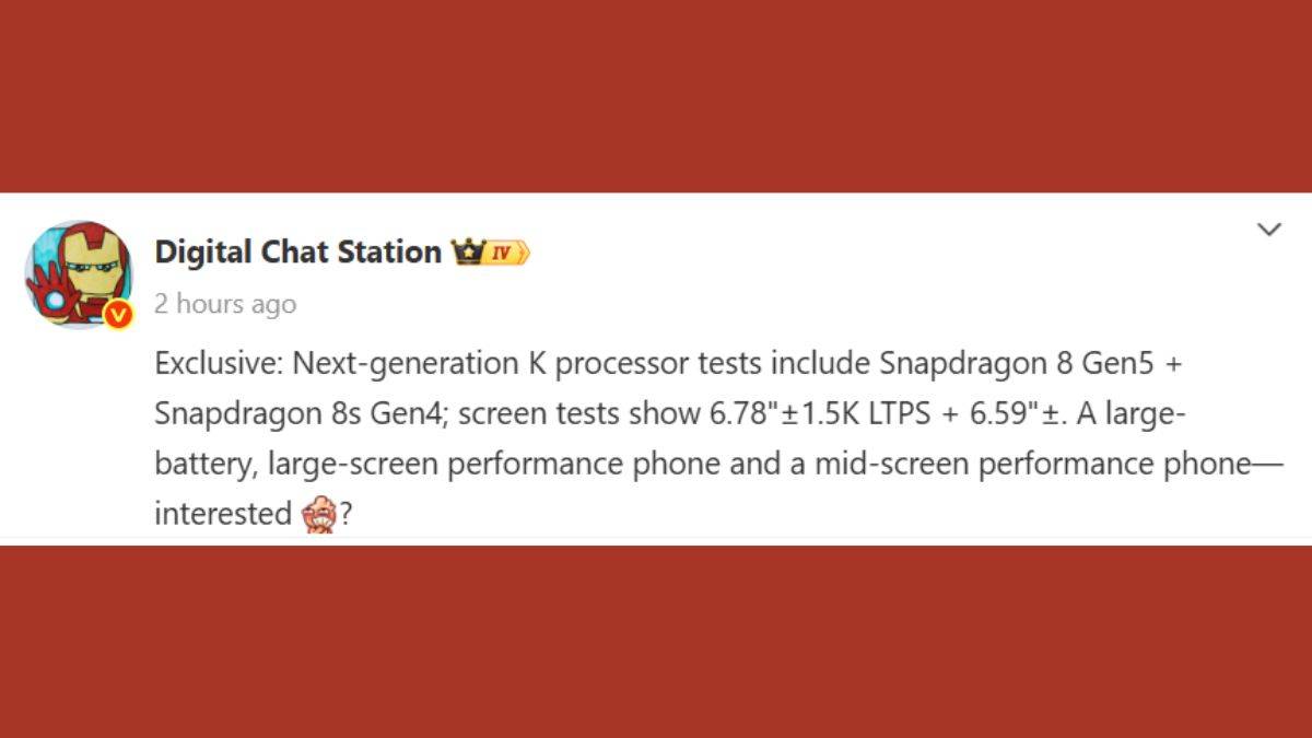 টিপস্টার ডিজিটাল চ্যাট স্টেশনের মাধ্যমে পাওয়া তথ্য থেকে Oppo K15 Turbo এবং Oppo K15 Turbo Pro ফোনটির বেশ কিছু গুরুত্বপূর্ণ স্পেসিফিকেশন সম্পর্কে জানা গেছে। প্রকাশ্যে আসা লিক অনুযায়ী ওপ্পো তাদের নেক্সট জেনারেশন K সিরিজ ফোনগুলি Snapdragon 8 সিরিজের প্রসেসর সহ টেস্টিং চলছে। অন্যদিকে আগের K13 Turbo মডেলে 6.8 ইঞ্চির ডিসপ্লে দেওয়া হয়েছিল। এবার উভয় মডেলের ডিসপ্লে সাইজ আলাদা হবে বলে আশা করা হচ্ছে।