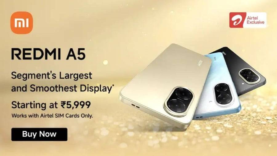 সস্তা স্মার্টফোন প্রেমীদের জন্য রেডমি ভারতের বাজারে নতুন Airtel Exclusive Redmi A5 স্মার্টফোন পেশ করেছে। নাম দেখেই বোঝা যাচ্ছে এই ফোনটি ‘এক্সক্লুসিভ এয়ারটেল এডিশন’ স্মার্টফোন এবং ফোনটি রেডমি ও এয়ারটেলের যৌথ উদ্যোগে তৈরি করা হয়েছে। মাত্র 5,999 টাকা দামের এই ফোনে বিভিন্ন টেলিকম বেনিফিট পাওয়া যাবে। প্রথমেই জানিয়ে রাখি এই ফোনে শুধুমাত্র এয়ারটেল সিম ব্যাবহার করা যাবে এবং এর পরিবর্তে কোম্পানির পক্ষ থেকে রিচার্জ প্ল্যানে ডিসকাউন্ট ও ফ্রি ইন্টারনেট ডেটা দেওয়া হবে।