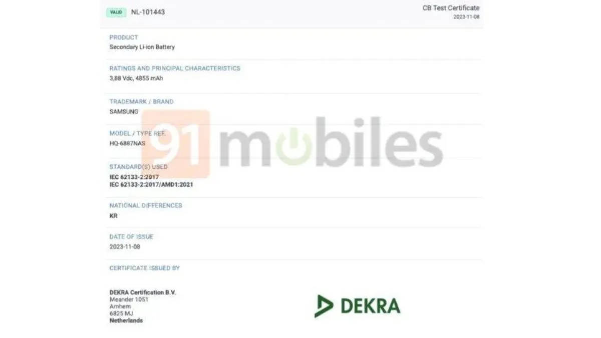 - Dekra সার্টিফিকেশনের ইমেজ অনুযায়ী এই ফোনে 4,855mAh ব্যাটারি অর্থাৎ 5,000mAh ব্যাটারি যোগ করা হতে পারে।