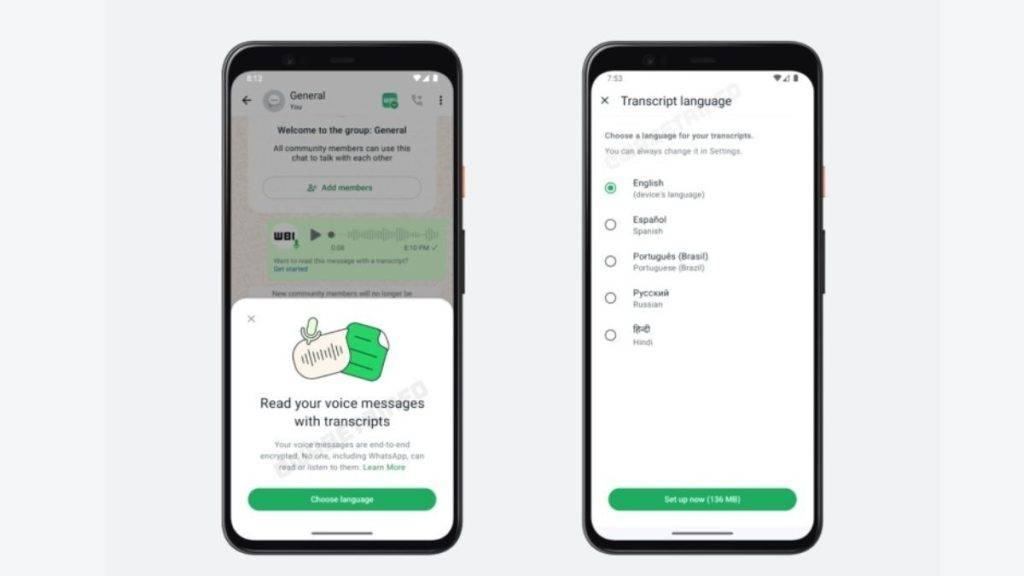 WhatsApp এর দেওয়া ডেটা অনুযায়ী আগামী কয়েক সপ্তাহের মধ্যে গোটা বিশ্বের সমস্ত iOS এবং Android ইউজারদের জন্য ভয়েস ম্যাসেজ ট্রান্সক্রিপশন ফিচার রোলআউট করে দেওয়া হবে। প্রথম পর্যায়ে এই ফিচার হাতে গোনা কয়েকটি ভাষা সাপোর্ট করবে। কোম্পানির পক্ষ থেকে জানানো হয়েছে শুরুতে এই ফিচারে ইংলিশ, পর্তুগিজ, স্প্যানিশ এবং রাশিয়ান ভাষা সাপোর্ট পাওয়া যাবে। তবে এই ফিচারের বিটা ভার্সনে ইতিমধ্যে হিন্দি ভয়েস ম্যাসেজও টেক্সটে কনভার্ট করার অপশন রয়েছে। ভবিষ্যতে বিভিন্ন ভাষা এতে সাপোর্ট করার পরিকল্পনা নেওয়া হচ্ছে।