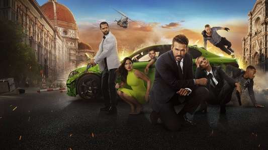 A year prior to the release Ryan Reynolds posted a video on Instagram of himself talking about how quiet Michael Bay's movies are, while in the background a car explodes. This scene is in the movie and you can actually see Reynolds in the background filming the video for this post.