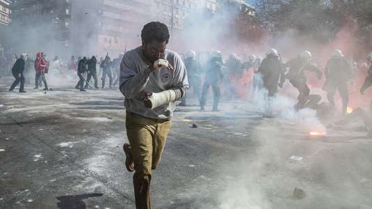 When Beckett and Tynan leave the US Embassy by car the parking gate shown is the one of "Megaro Mousikis" right across the street.