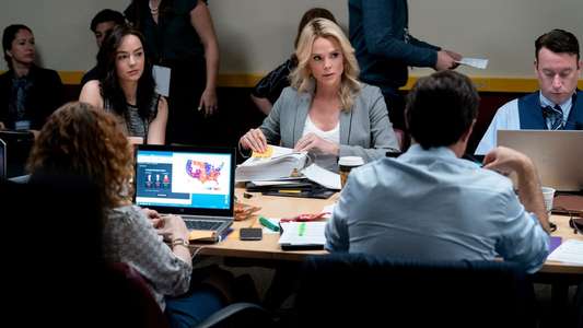 The scene of real-life character Roger Ailes (John Lithgow) asking the fictitious character of Kayla Pospisil (Margot Robbie) to lift up her skirt was filmed with multiple cameras capturing all the angles at once. Jay Roach didn't want Robbie to have to perform that scene for more than one take.