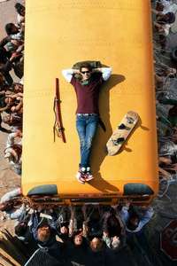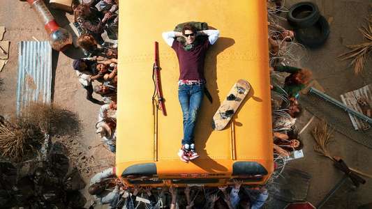 Josh drives a car with the license plate "FURYRD", a reference to Mad Max: Fury Road.