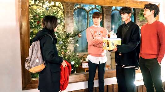 "Kim Shin: [narrating] Mass is not proportional to volume. A girl as small as violet. A girl who moves like a flower petal pulls me with a greater force than earth. Just then, like Newton's apple I rolled toward her without stopping until I fell on her, with a thump. With a thump. My heart was bouncing between the sky and ground.It was my first love."