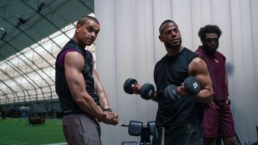 Tyriq Withers, watched movies with similar themes of perfectionism, like "Black Swan" (2010), starring Natalie Portman as a ballerina driven beyond all reason to succeed, and "Whiplash" (2014), with J.K. Simmons as an abusive music teacher. Withers also trained for about two months with Jordan Palmer, a private quarterback coach who has worked with the N.F.L. stars Joe Burrow and Josh Allen, and Withers bonded with one of Palmer's clients, the New England Patriots backup quarterback Joe Milton III. "I think it was so important to telling this movie because I think there's a certain swagger, a certain cadence to a N.F.L. football player that like you cannot fake," Withers said. Marlon Wayans, watched the Ultimate Fighting Championship, and read a book by Michael Jordan's former trainer, Tim Grover, to get in the proper mind-set for his role. But he also felt genuine competition with Withers, 27, who was already in shape in the early days of weight conditioning for the movie. "I liked that he was big like that because for me, mentally, it allowed me to go to even a darker place," Wayans said. "It allowed me to seep into the jealousy."