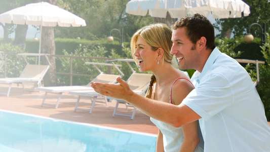This is the first collaboration between Adam Sandler and Jennifer Aniston. The two of them have known each other for twenty years, before either of them became famous. They met through some mutual friends and shared meals together. She also used to watch him perform at the Improv, and she attended his wedding in 2003. He had also tried to get her to join Saturday Night Live (1975) during his time there, but she turned it down to join Friends (1994).