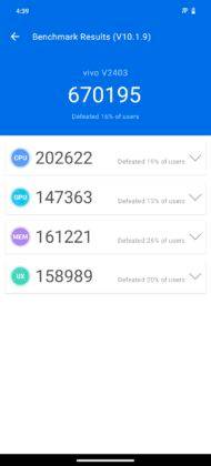 गीकबेंच में जहां फोन की सीपीयू पावर चेक की जाती है। वहीं एनटूटू बेंचमार्क में CPU के साथ ही GPU, Memory और UX की परफॉर्मेंस को भी परखा जाता है। 91मोबाइल्स द्वारा किए गए इस टेस्ट में वीवो वी40ई ने 6,70,195 एनटूटू स्कोर हासिल किया है। वहीं वनप्लस नॉर्ड 4 का एनटूटू स्कोर 11,69,622 रहा है। आप देख ही सकते हैं कि यहां वनप्लस मोबाइल ने वीवो को तगड़ी पटखनी दी है।