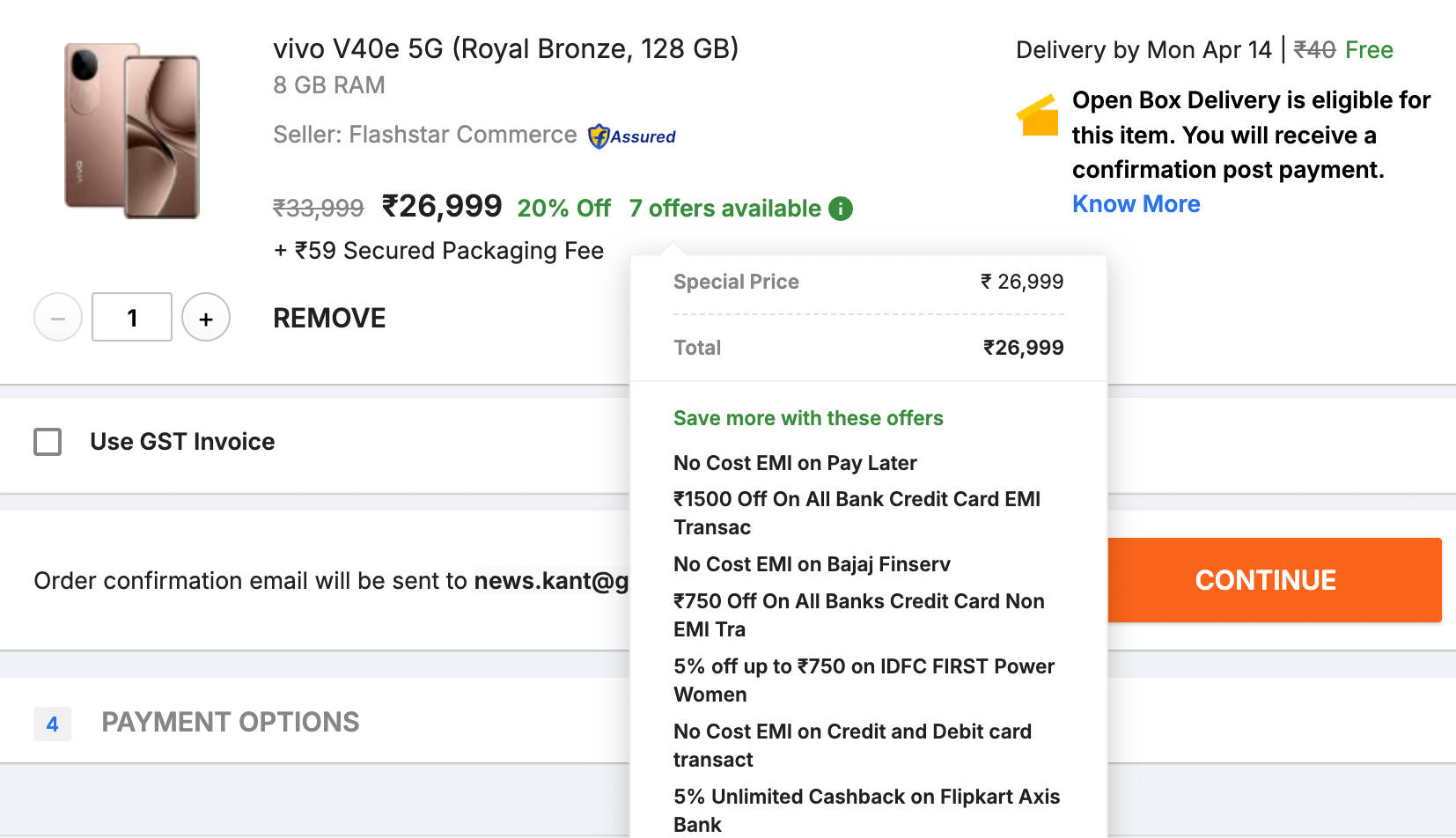 - इस छूट के बार 8जीबी रैम वाले 5जी फोन वीवो वी40ई का इफेक्टिव प्राइस 25,499 रुपये पड़ेगा।