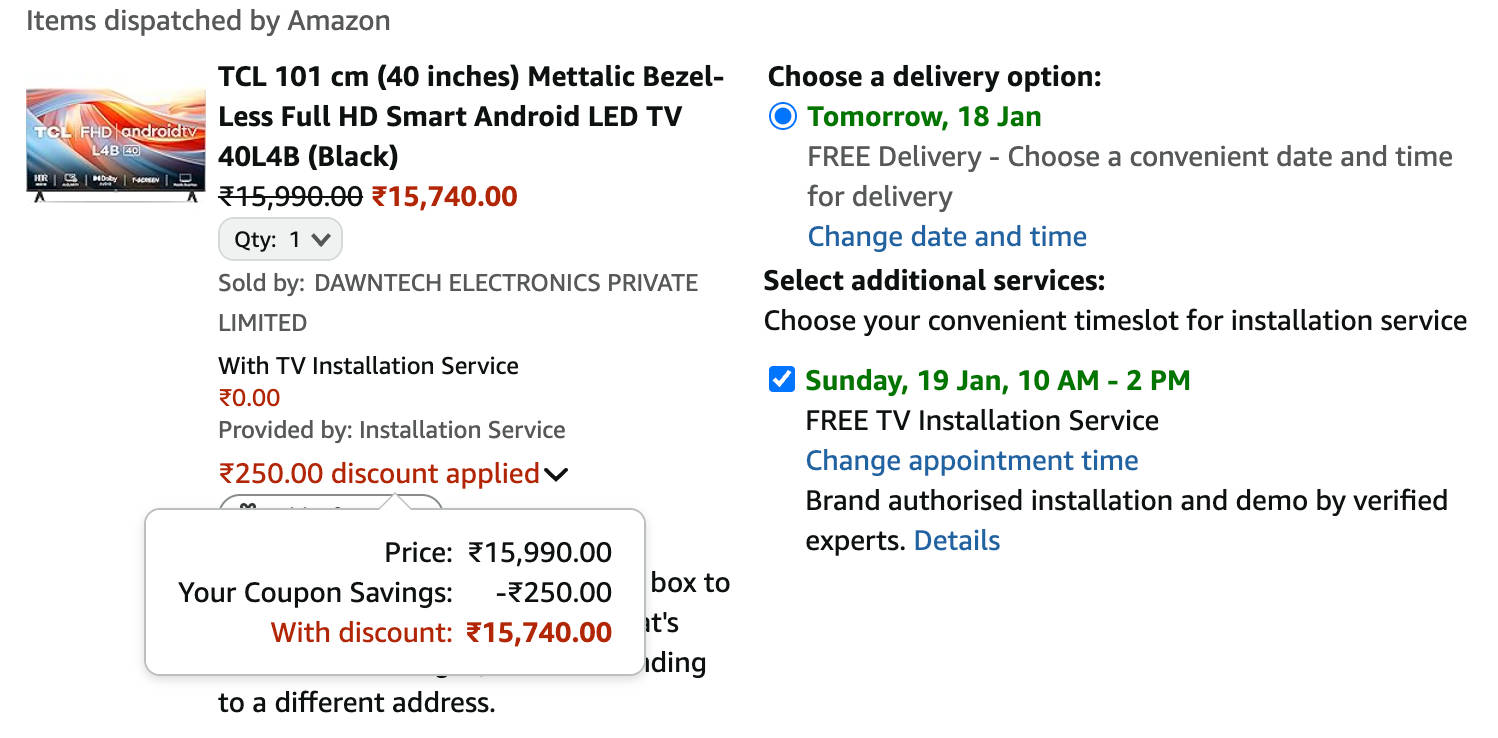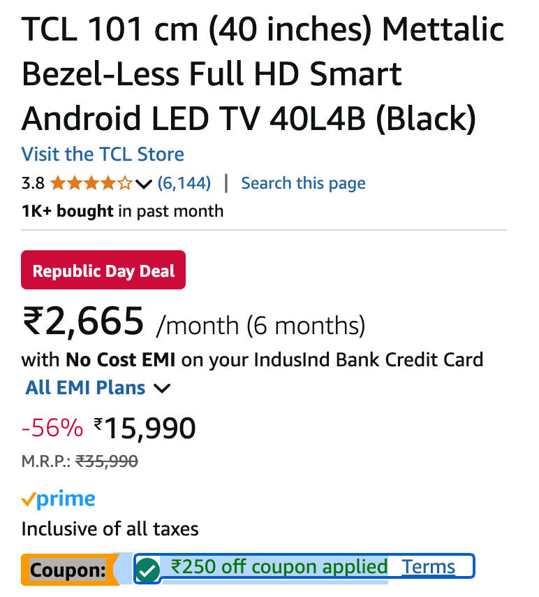 40 इंच टीसीएल स्मार्ट टीवी पर ऑफर