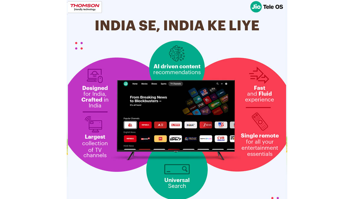 जैसा कि नए थॉमसन टीवी के नाम से ही पता चलता है, इन्हें JioTele OS इंटिग्रेशन के साथ पेश किया गया है। ये क्यूएलइडी टेलीविज़न इंडियन स्मार्ट टीवी ऑपरेटिंग सिस्टम जियोटेली ओएस पर चलते हैं। यह ओएस खासतौर पर भारतीय कस्टमर्स के लिए डिजाइन किया गया है। कंट्रोल के लिए इसमें HelloJio वॉयस असिस्टेंट दिया गया है, जो 10 से ज्यादा भारतीय भाषाओं में काम करता है।