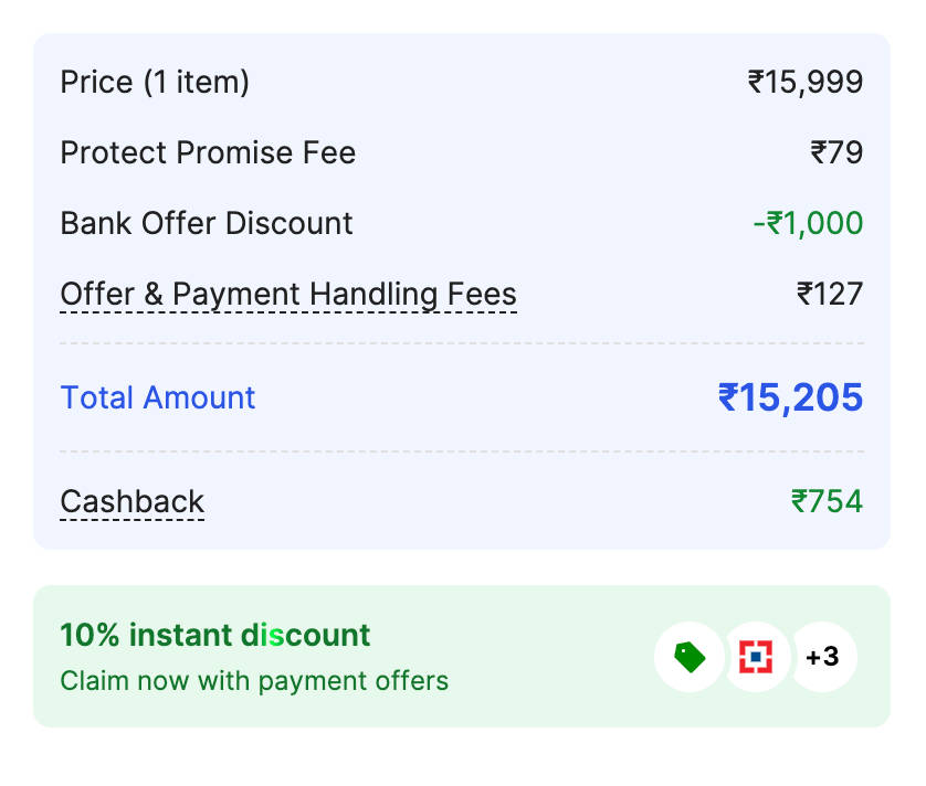 8जीबी रैम वाला 5जी फोन मोटो जी95 17,999 रुपये में लॉन्च हुआ था। यह मोबाइल के 8GB RAM + 128GB Storage वेरिएंट का प्राइस है। शॉपिंग साइट फ्लिपकार्ट इस स्मार्टफोन को 2,000 रुपये के डिस्काउंट के साथ बेच रही है जिसके बाद इसे 15,999 रुपये में पाया जा सकता है। यह फोन का सेलिंग प्राइस है और इसके लिए किसी भी कार्ड या कूपन की जरूरत नहीं।