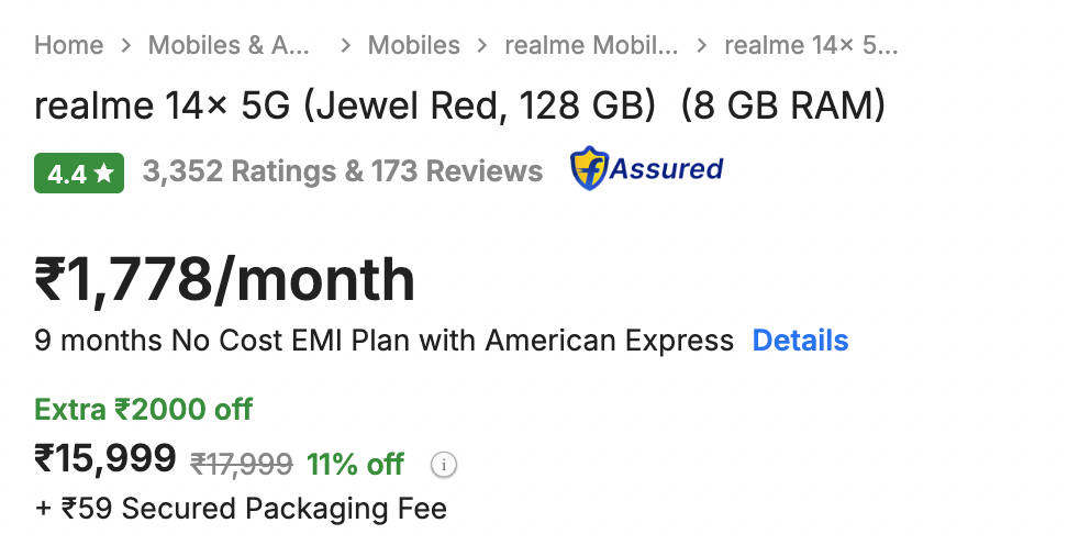 - इस प्लेटफॉर्म पर से यह 8जीबी रैम वाला 5जी फोन 14,499 रुपये में परचेज किया जा सकता है।