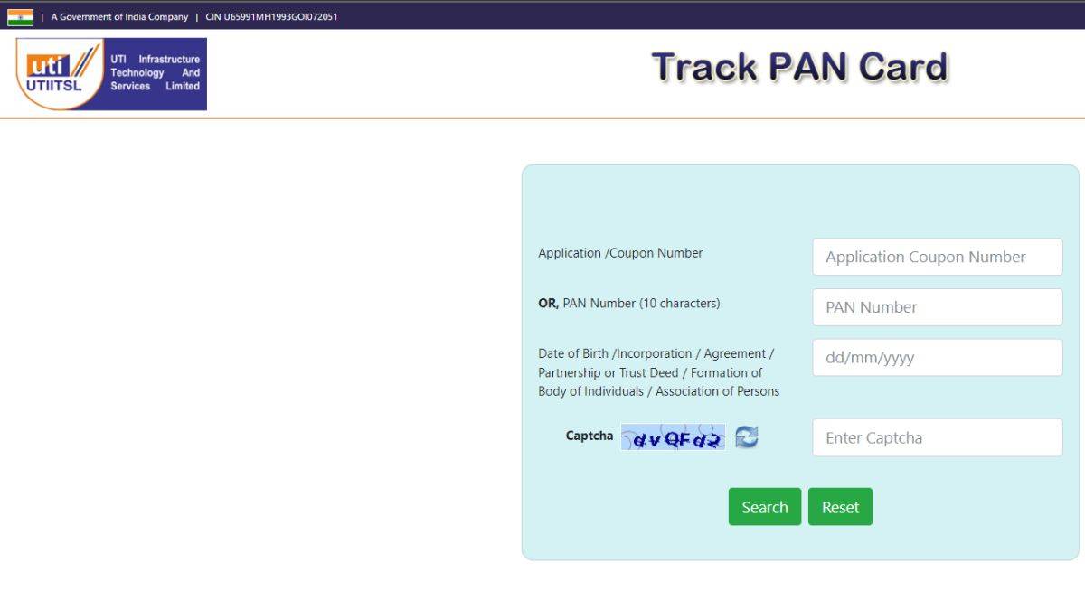 अगर आपके पास पैक कार्ड का एप्लीकेशन नंबर है, तो फिर UTI वेबसाइट की मदद से भी पैन कार्ड स्टेटस को ऑनलाइन चेक कर सकते हैं। इसके लिए नीचे दिए गए स्टेप को फॉलो करेंः
