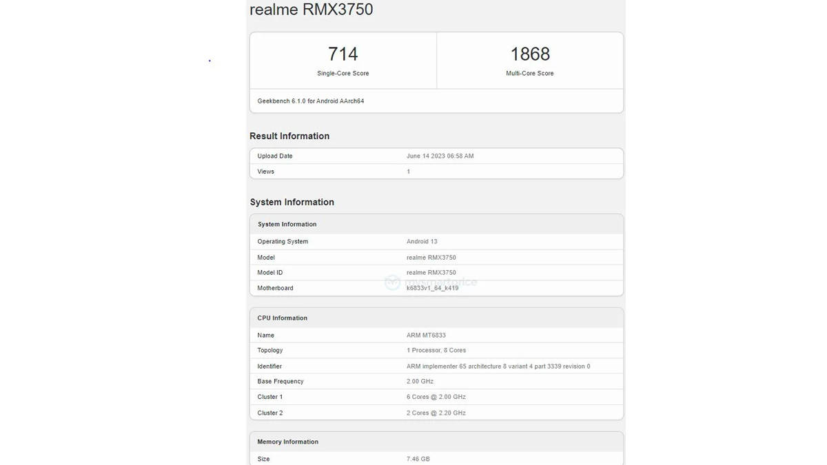 Realme Narzo 60 गीकबेंच लिस्टिंग