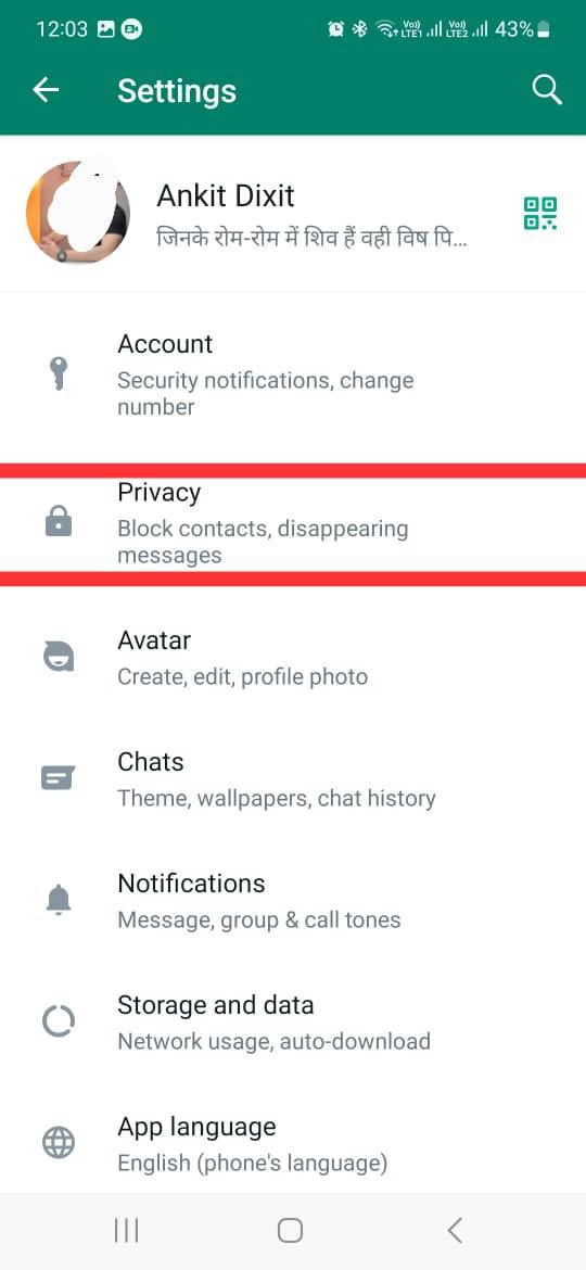 - सेटिंग में प्राइवेसी ऑप्शन पर टैप करना है।