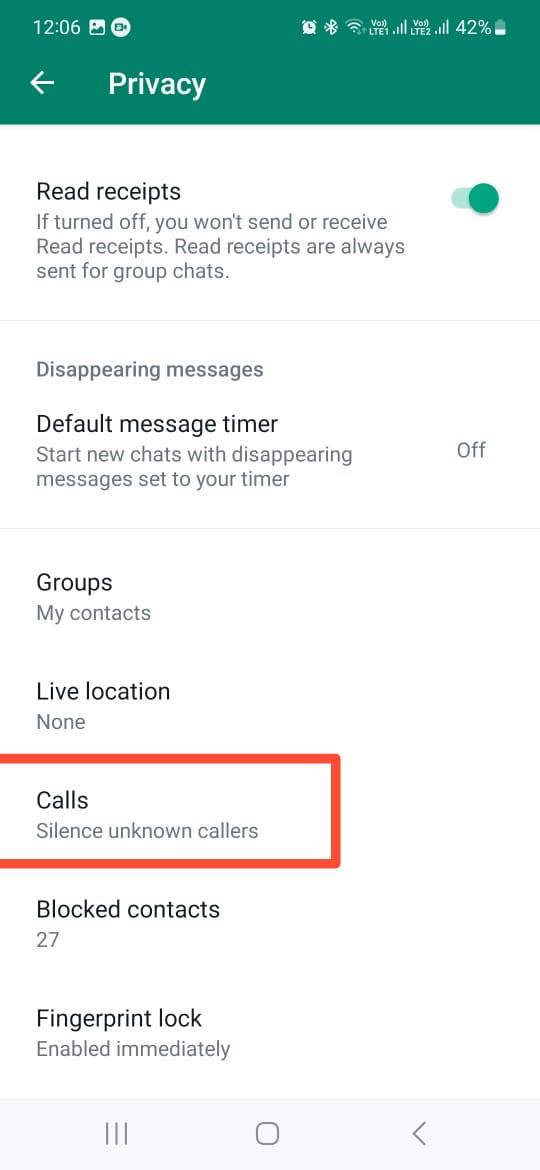 - अब कॉल्स ऑप्शन पर टैप करें और ‘Silence unknown callers’ ऑप्शन को ऑन कर दें।