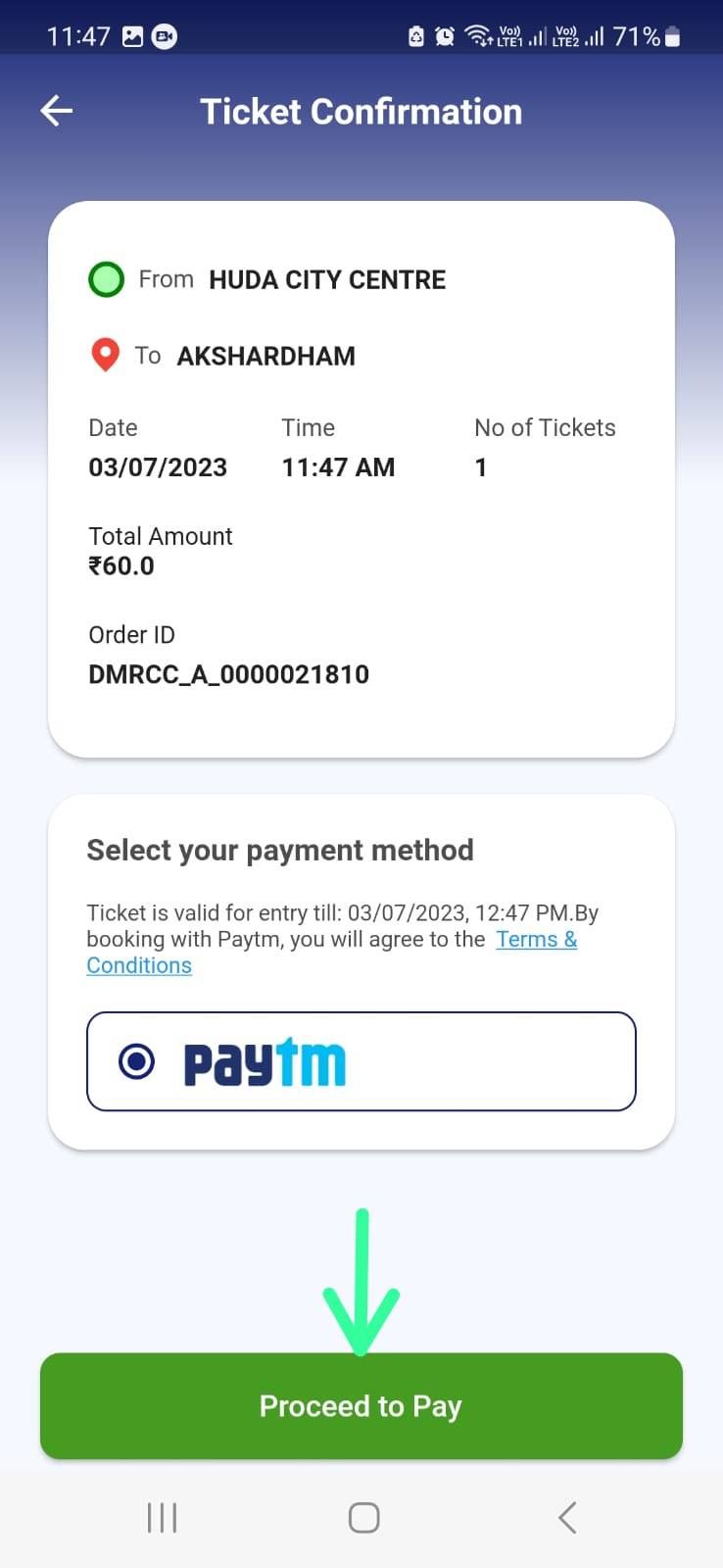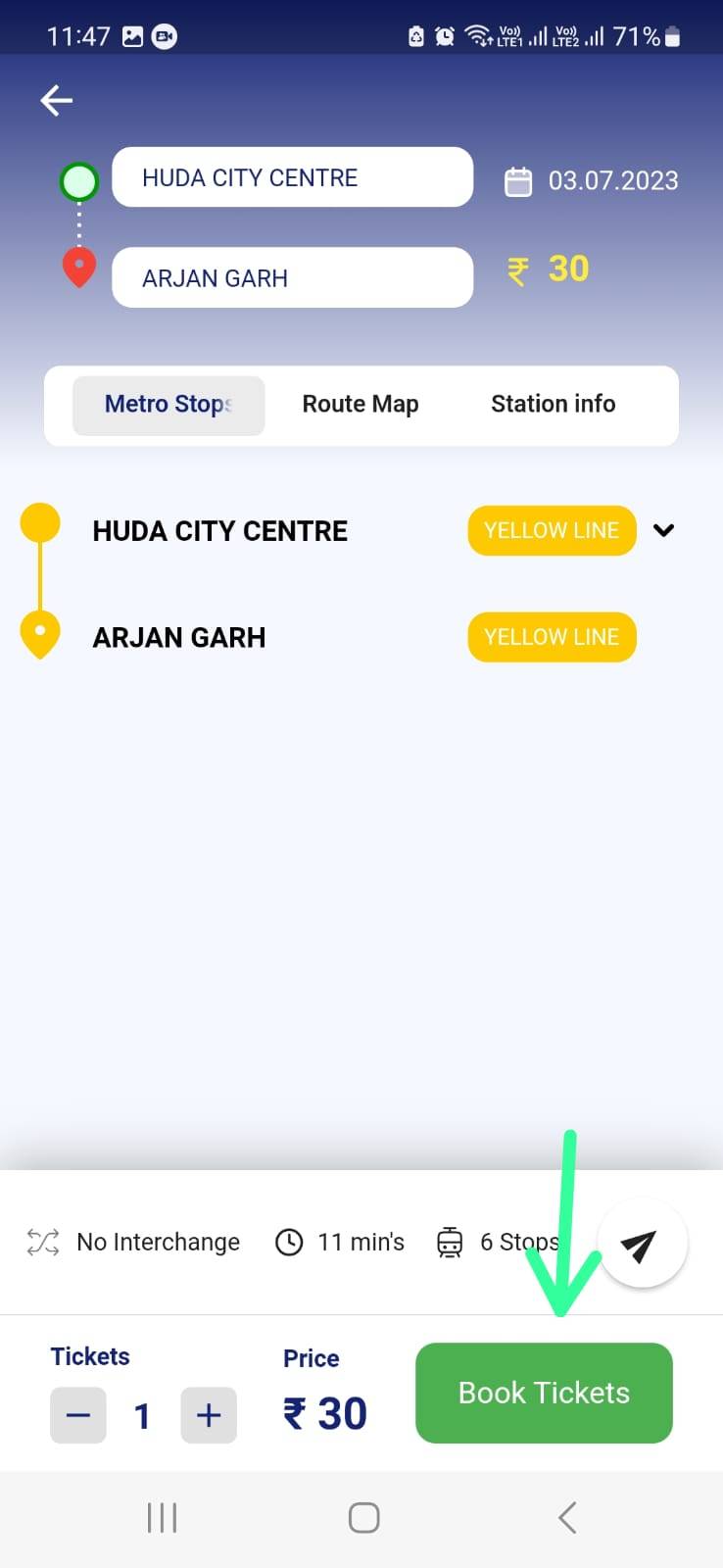 - स्टेशन सलेक्ट करने के बाद टिकट की कीमत, कुल स्टेशन व यात्रा समय की जानकारी आपके सामने आ जाएगी।