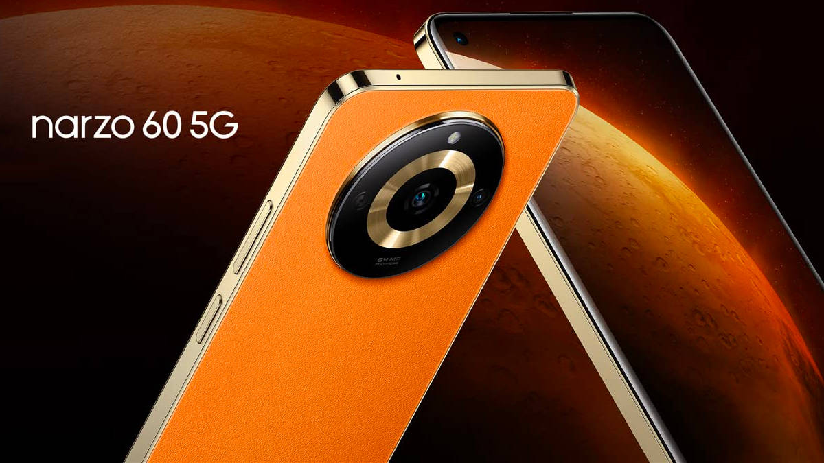 नारज़ो 60 5जी प्रो स्मार्टफोन का बैक पैनल लैदर फिनिश वाला दिखाई दे रहा है जिसके ऐज कर्व्ड स्टाईल वाले हैं। यहां पैनल पर नीचे की ओर Narzo की ब्रांडिग दी गई है। फोन के राईट पैनल पर वॉल्यूम रॉकर और पावर बटन भी नज़र आ रहा है। वनिला मॉडल यानी Narzo 60 5G में पंच-होल डिस्प्ले दी जाएगी जिसमें सेल्फी कैमरे से लैस होल स्क्रीन के उपरी ओर बाईं दिया गया है। वहीं Pro मॉडल में यह पंच-होल सेंटर में है।