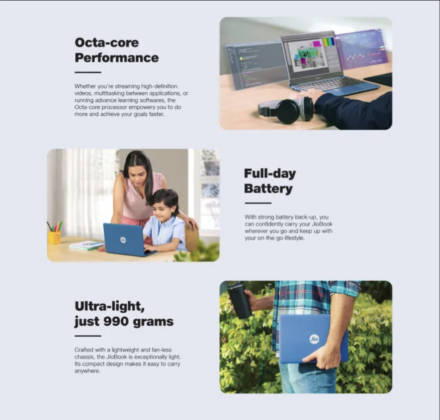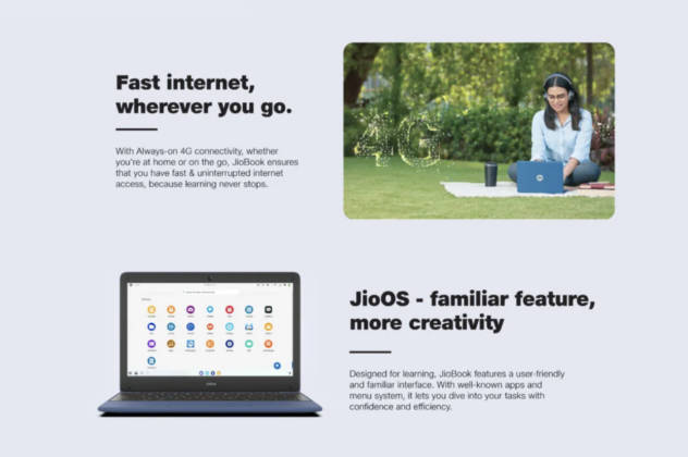 इसके अलावा यह कन्फर्म हो गया है कि लैपटॉप 4G कनेक्टिविटी से लैस होगा। वहीं, नए जियोबुक में JioOS (एंडरॉयड बेस्ड) और ऑक्टा-कोर प्रोसेसर दिया जाएगा। इसके अलावा कंपनी इसमें पुरे दिन चलने वाली बैटरी दे सकती है।