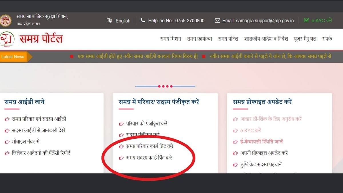 स्टेप-1: इसके लिए आधिकारिक वेबसाइट पर जाने के बाद ‘समग्र में परिवार/ सदस्य पंजीकृत करें’ वाले सेक्शन में जाएं, फिर नीचे की तरफ ‘समग्र सदस्य कार्ड प्रिंट करे’ वाले ऑप्शन पर क्लिक करें।