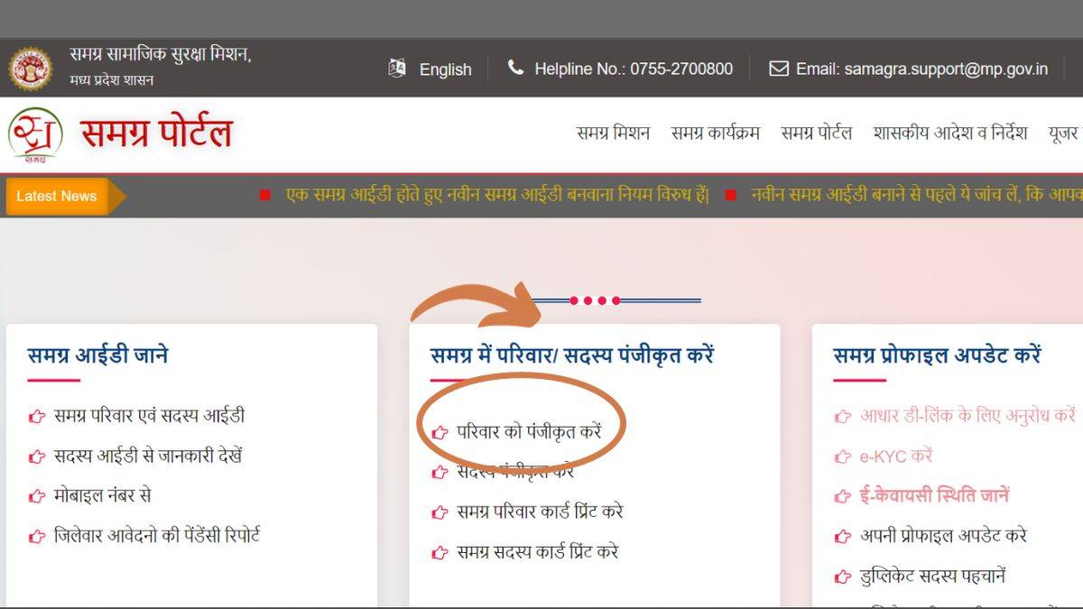 स्टेप-2: इसके बाद समग्र में परिवार/सदस्य पंजीकृत करें वाले सेक्शन में जाएं और परिवार को पंजीकृत करें पर क्लिक करें।