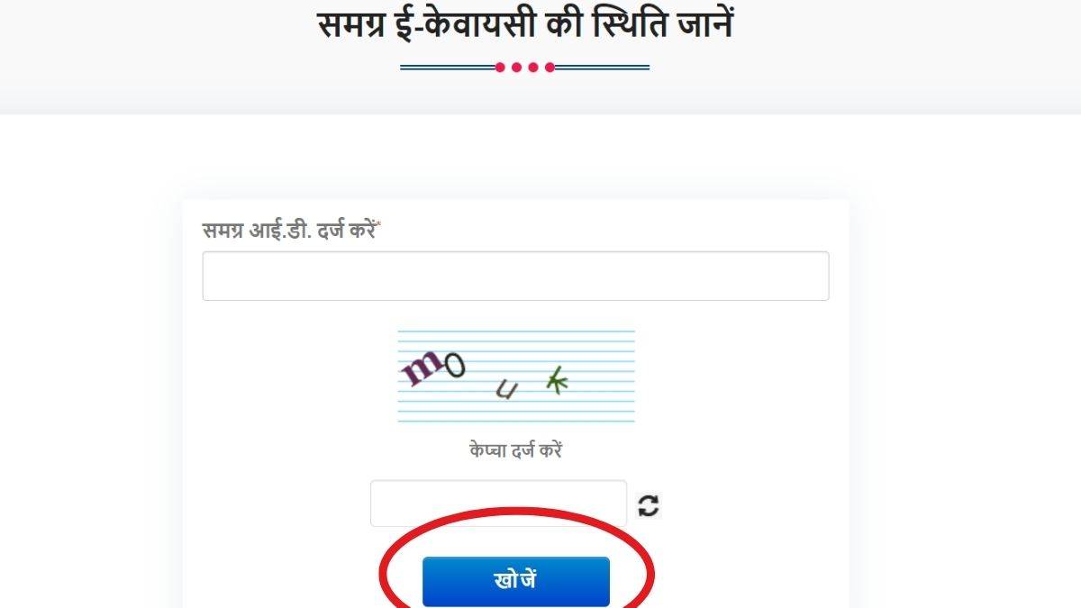 इसके बाद एक नया पेज खुलेगा, जहां आपको अपना समग्र आईडी दर्ज करना है। फिर नीचे कैप्चा दर्ज करना होगा। इसके बाद ‘खोजें’ पर क्लिक करें। आपको ई-केवाईसी की स्थिति की जानकारी मिल जाएगी।