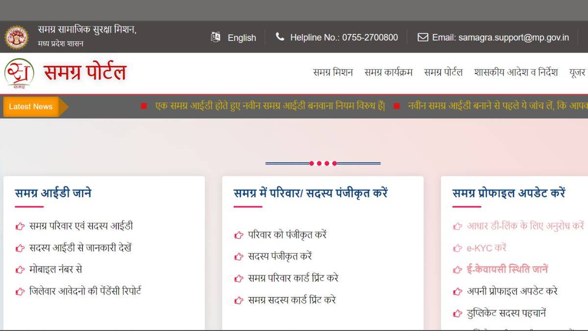 मध्यप्रदेश में समग्र आईडी रजिस्ट्रेशन, अपडेट करने आदि से जुड़ी जानकारी के लिए हेल्पलाइन नंबर पर भी कॉन्टैक्ट कर सकते हैंः