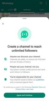 - क्रिएट चैनल पर टैप करने के बाद व्हाट्सऐप चैनल के नियम व शर्तें सामने आएगी, इन्हें पढ़कर नीचे दिए गए ‘Agree and Continue’ के बटन पर टैप कर दें।