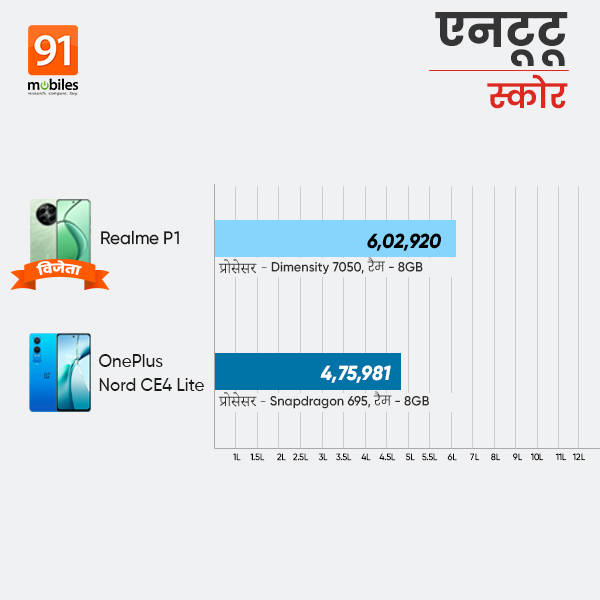 | AnTuTu Score | realme P1 5G | OnePlus Nord CE4 Lite |