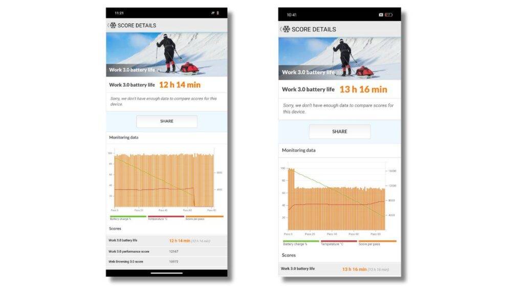| PCMark Score | 12 घंटे 14 मिनट | 13 घंटे 16 मिनट |