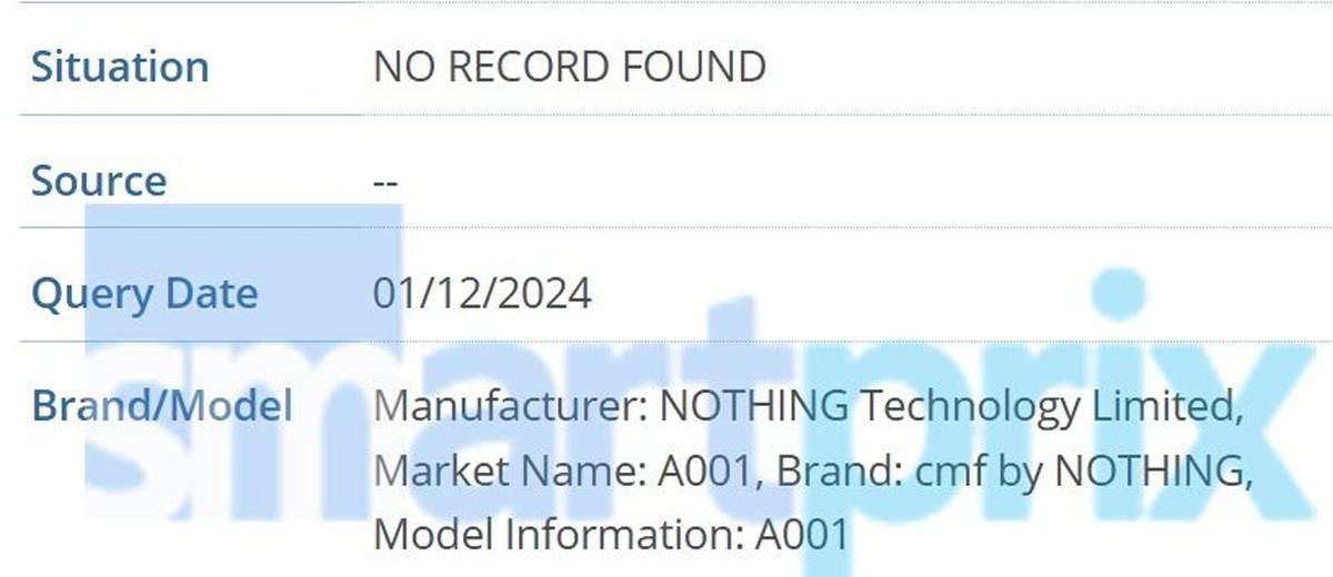 - IMEI/GSMA डेटाबेस लिस्टिंग में ‘A001’ मॉडल वाले फोन का ब्रांड CMF by Nothing दिखाई दिया है।