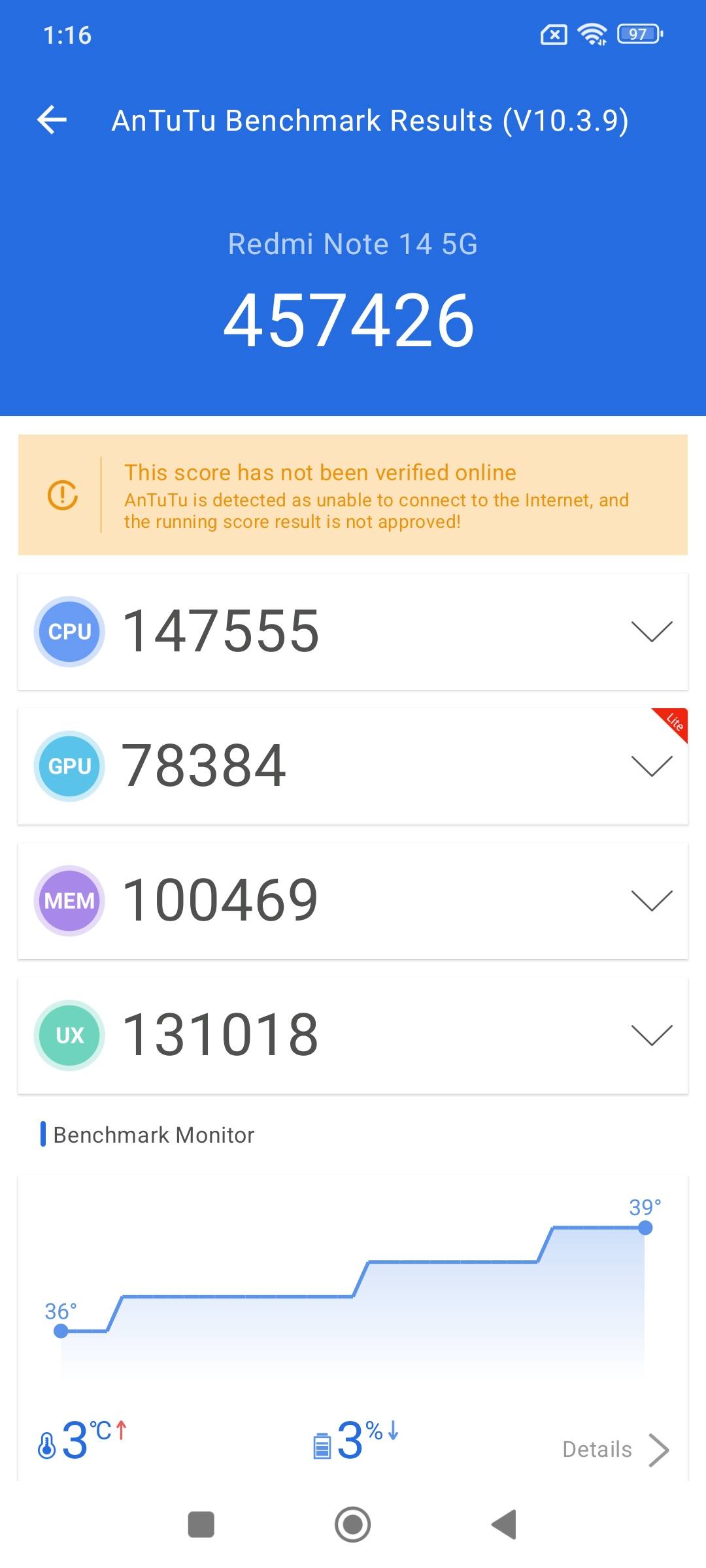 Redmi Note 14 मीडियाटेक डाइमेंसिटी 7025 अल्ट्रा चिपसेट के साथ डेली यूज और कैजुअल गेमिंग के लिए उपयुक्त है, लेकिन लंबे गेमिंग सेशन के दौरान यह गर्म होने लगता है, जो iQOO Z9s और Realme 13 जैसे प्रतिस्पर्धियों से पीछे रह जाता है। बर्नआउट CPU थ्रॉटल टेस्ट में भी थर्मल दक्षता की कमी उजागर होती है।