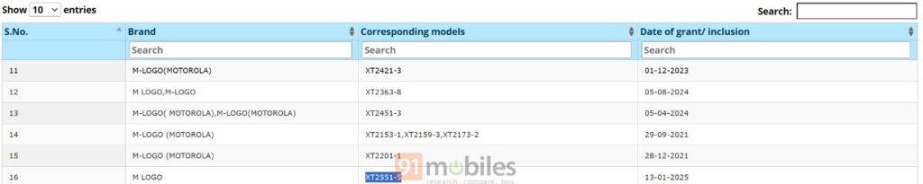 XT2551 कोड वाले मोटोरोला डिवाइस को भारत के BIS पोर्टल पर सर्टिफिकेशन मिला है। पहले की रिपोर्ट के आधार पर हमें उम्मीद है कि यह डिवाइस मोटोरोला रेजर 60 अल्ट्रा हो सकता है। स्मार्टफोन का कोडनेम ओरियन है और मॉडल नंबर से यह भी संकेत मिलता है कि यह मोटोरोला रेजर 50 अल्ट्रा (XT2451) का सक्सेसर है।