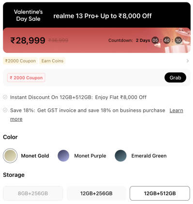 | 12GB RAM + 512GB Storage | ₹34,999 | ₹6,000 | ₹28,999 |