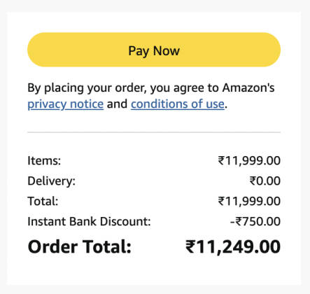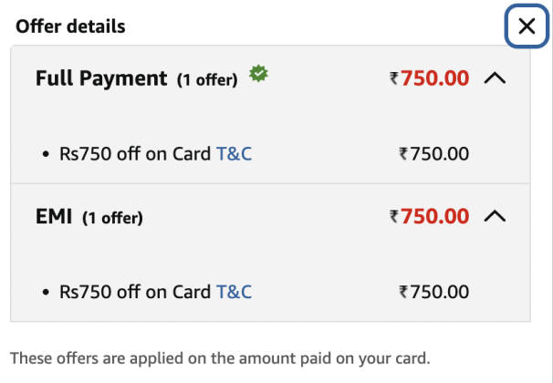 - वहीं अब आप क्रेडिट कार्ड से पेमेंट करते हैं तो कंपनी ₹750 का एक्स्ट्रा ऑफ दे रही है।