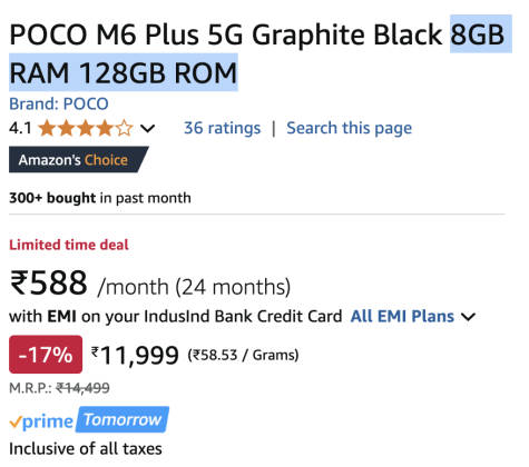 - अब शॉपिंग साइट अमेजन पर फोन के 8जीबी रैम मॉडल को सिर्फ ₹11,999 में बेचा जा रहा है।