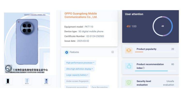 OPPO Find X8s स्मार्टफोन को मॉडल नंबर PKT110 के साथ TENAA सर्टिफिकेशन मिला है इसमें ग्राहकों को नीचे दी गई खूबियां मिल सकती है।