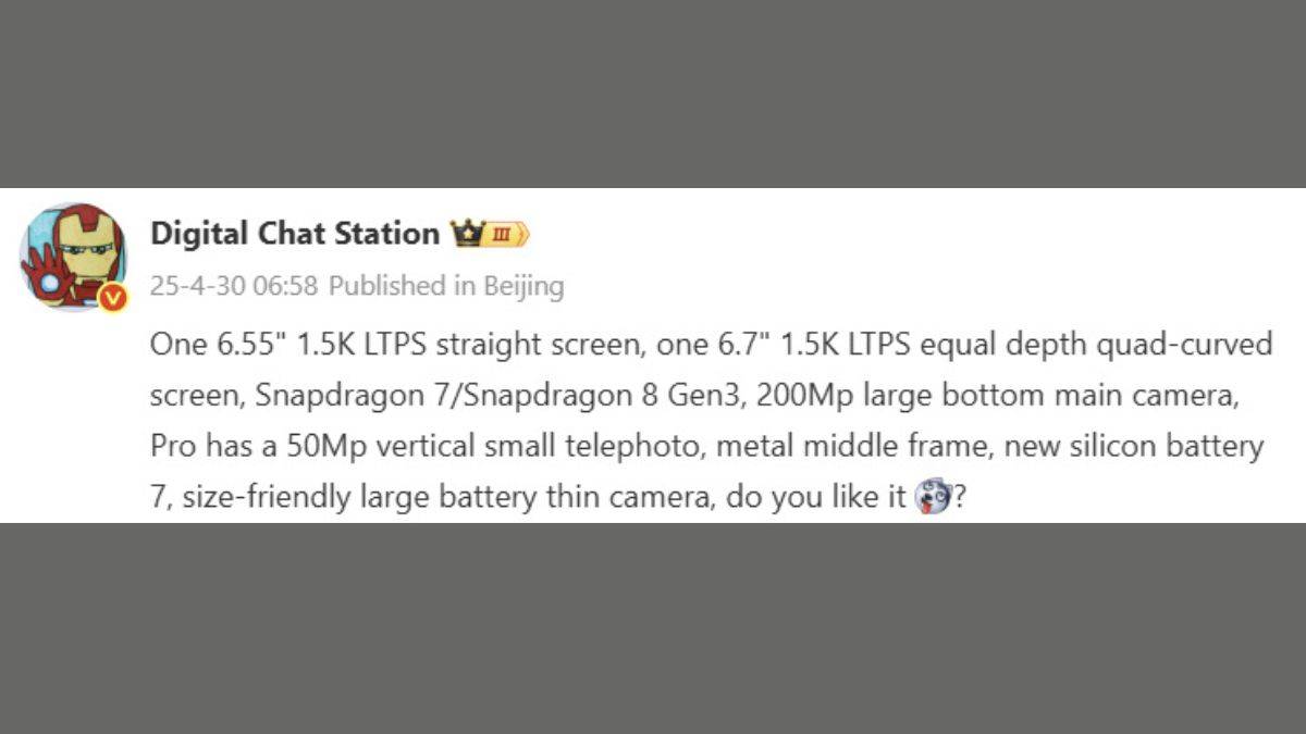 - बैटरी: फोन में नई पीढ़ी की सिलिकॉन-बेस्ड बैटरी दी जा सकती है। जिसकी क्षमता लगभग 7000mAh हो सकती है। जबकि चार्जिंग के लिए इसमें 80W फास्ट चार्जिंग सपोर्ट मिल सकती है। के