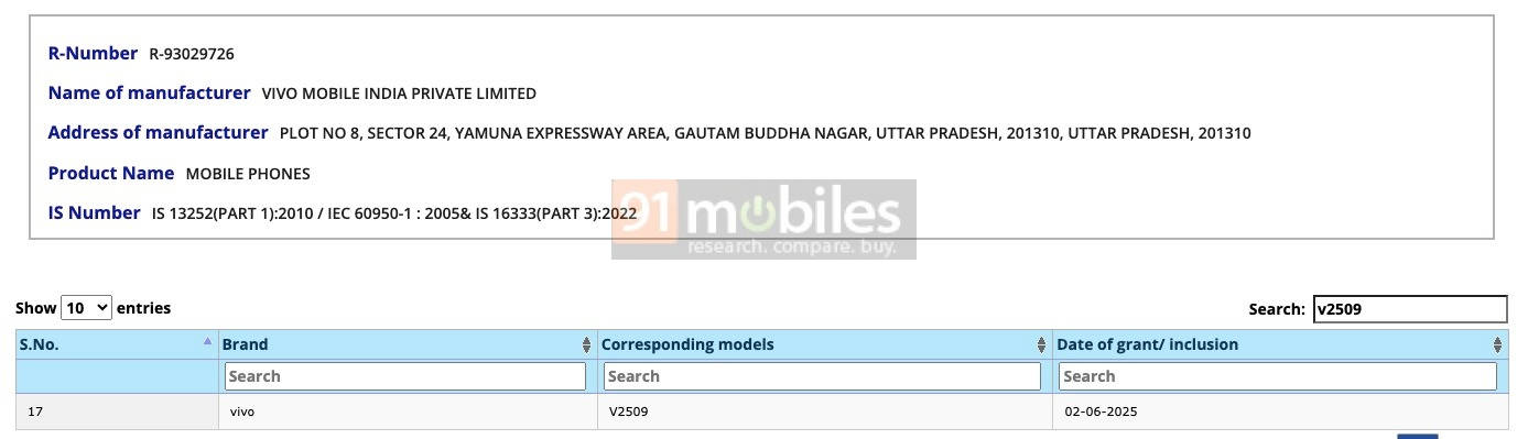 - 91mobiles ने Vivo T4 Lite को BIS सर्टिफिकेशन प्लेटफार्म पर मॉडल नंबर V2509 के साथ स्पॉट किया है।