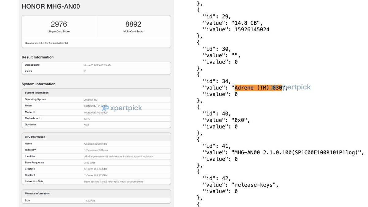 - ऑनर का आगामी फोल्डेबल फोन मैजिक वी5 गीकबेंच पर मॉडल नंबर MHG-AN00 के साथ देखा गया है।