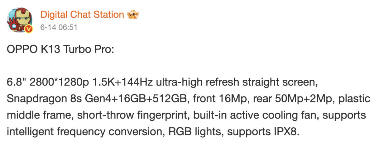 OPPO K13 Turbo Pro स्पेसिफिकेशन्स