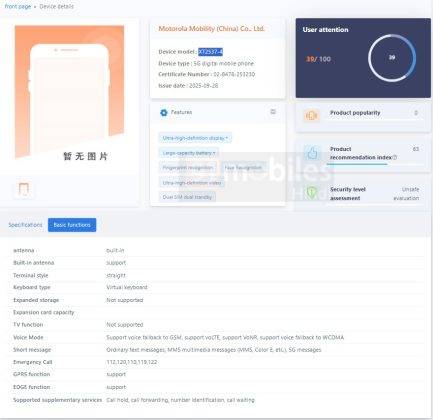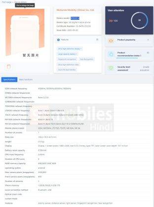 Moto G76 5G फोन को टेना पर XT2537-4 मॉडल नंबर के साथ लिस्ट कर दिया गया है। यहां फोन की अधिकांश स्पेसिफिकेशन्स सामने आ गई है। यही मोबाइल बीआईएस यानी ब्यूरो ऑफ इंडियन स्टैंडर्ड पर भी सर्टिफाइड हुआ है जो दर्शाता है कि नया मोटोरोला फोन भारतीय बाजार में भी उतारा जाएगा। लगे हाथ बता दें मोटो जी76 5जी स्मार्टफोन 3C और EEC सर्टिफिकेशन्स साइट पर XT2537-2 मॉडल नंबर के साथ भी स्पॉट हो चुका है।
