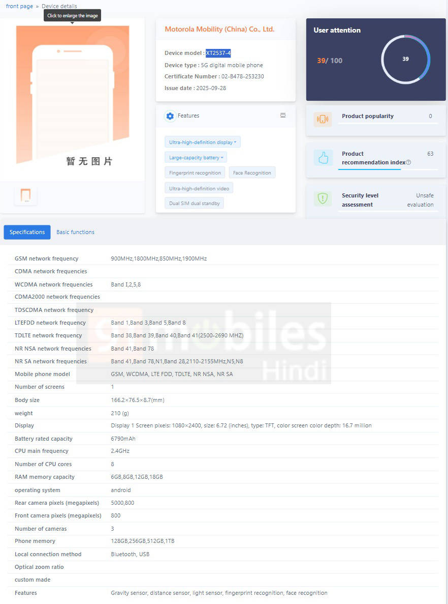 मोटोरोला ने पिछले साल अपनी ‘जी’ सीरीज का मिड बजट स्मार्टफोन Moto G75 5G ग्लोबल मार्केट में पेश किया था। वहीं अब इस मोबाइल का सक्सेसर भी बाजार में एंट्री लेने के लिए तैयार हो रहा है। कंपनी बेहद जल्द नए Moto G76 5G फोन को लॉन्च कर सकती है। यह स्मार्टफोन चीनी सर्टिफिकेशन साइट TENAA सहित इंडियन सर्टिफिकेशन प्लेटफॉर्म BIS पर लिस्ट हो गया है जिसे सबसे पहले 91मोबाइल्स ने स्पॉट किया है। अपकमिंग मोटो जी76 5जी फोन की डिटेल्स आप आगे पढ़ सकते हैं।